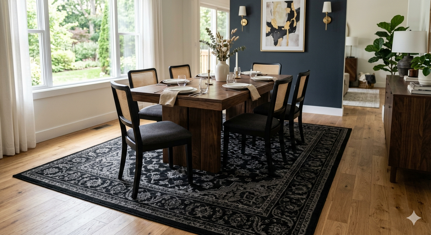 Black dining room rugs are the perfect intersection of high-end style and everyday functionality. They anchor your furniture, hide messy spills, and bring an undeniable touch of modern elegance to your home. By choosing the right size, material, and pile height, you can completely transform your dining experience.