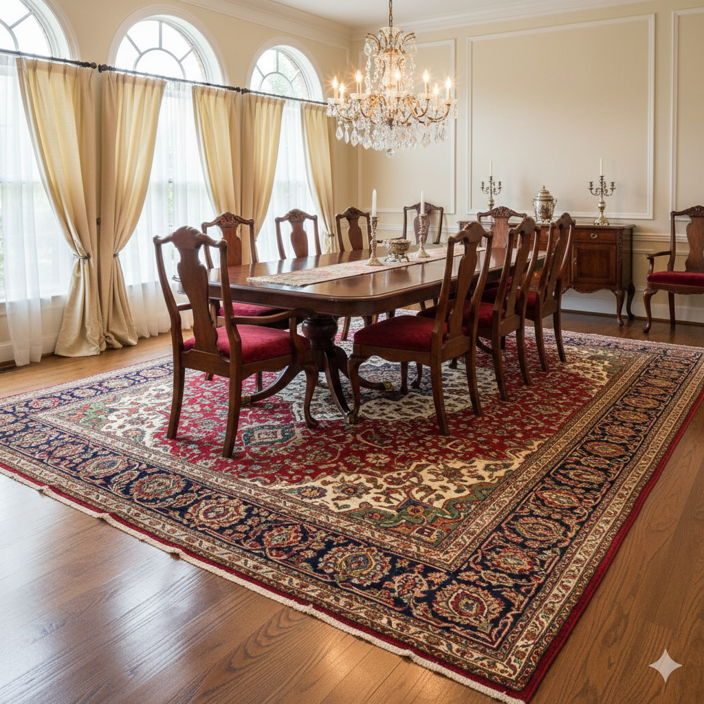 Hand Knotted Rug Placement Tips for Dining Room